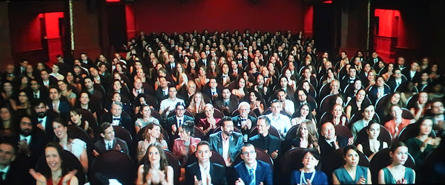 Near the end of "The Unbearable Weight of Massive Talent" (Lionsgate, 2022) we're in a theatre for a premiere of a film written by "Nicholas Cage" and his collaborator, played by Pedro Pascal. In the second row back it's Sharon Horgan as Nick's wife, Lily Mo Sheen as his daughter, "Nick" the screenwriter, and Neil Patrick Harris as his agent.